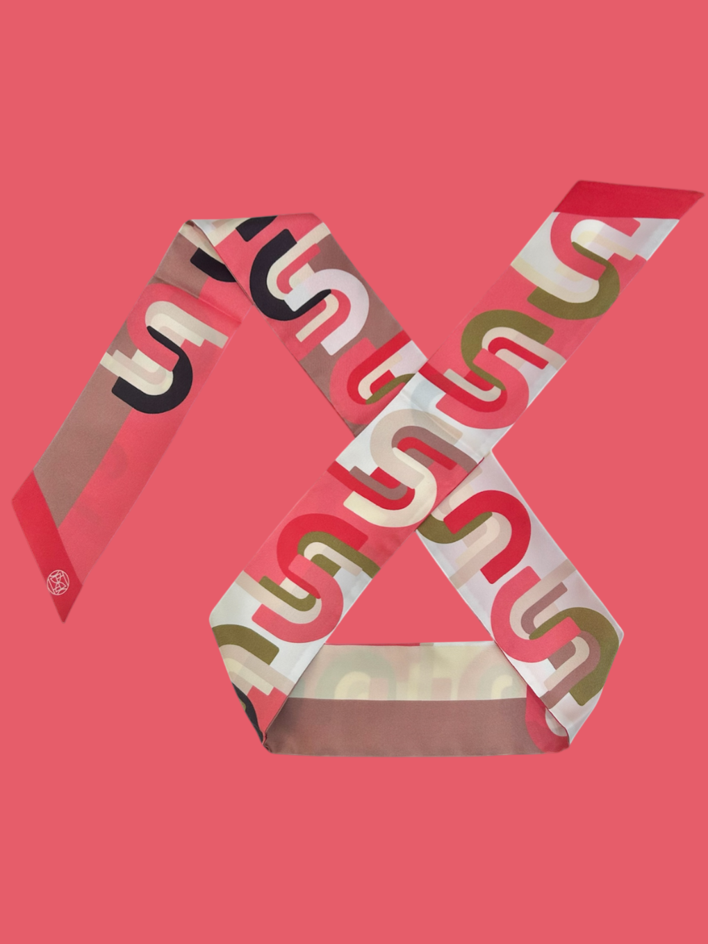 "Avec ses lignes graphiques et son lettrage stylisé, S comme soie affirme une identité forte : celle d’une soie qui se libère des codes classiques pour devenir un accessoire qui impose son style. C'est le troisième coloris que je sors dans ce graphisme, et assurément mon préféré. Cette harmonie de roses et de rouges, entre pivoine et tomate cerise, est un concentré de bonne mine. Un coup de blush en soie."  Valérie, Créatrice de Divine Trouvaille.