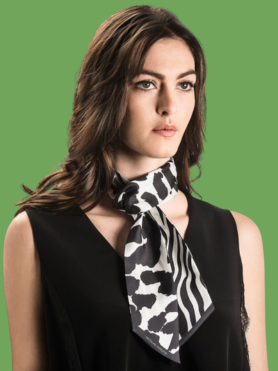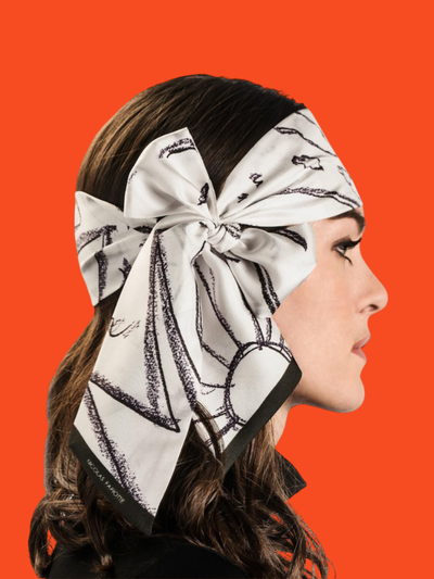 À nouer de multiples façons, au gré de vos envies : autour du cou, en cravate, en lavallière ou en écharpe, à la taille pour cintrer une robe ou une combi, dans les cheveux façon bohème ou dolce vita … A vous de jouer avec ce format qui n’a pas fini de vous inspirer.
