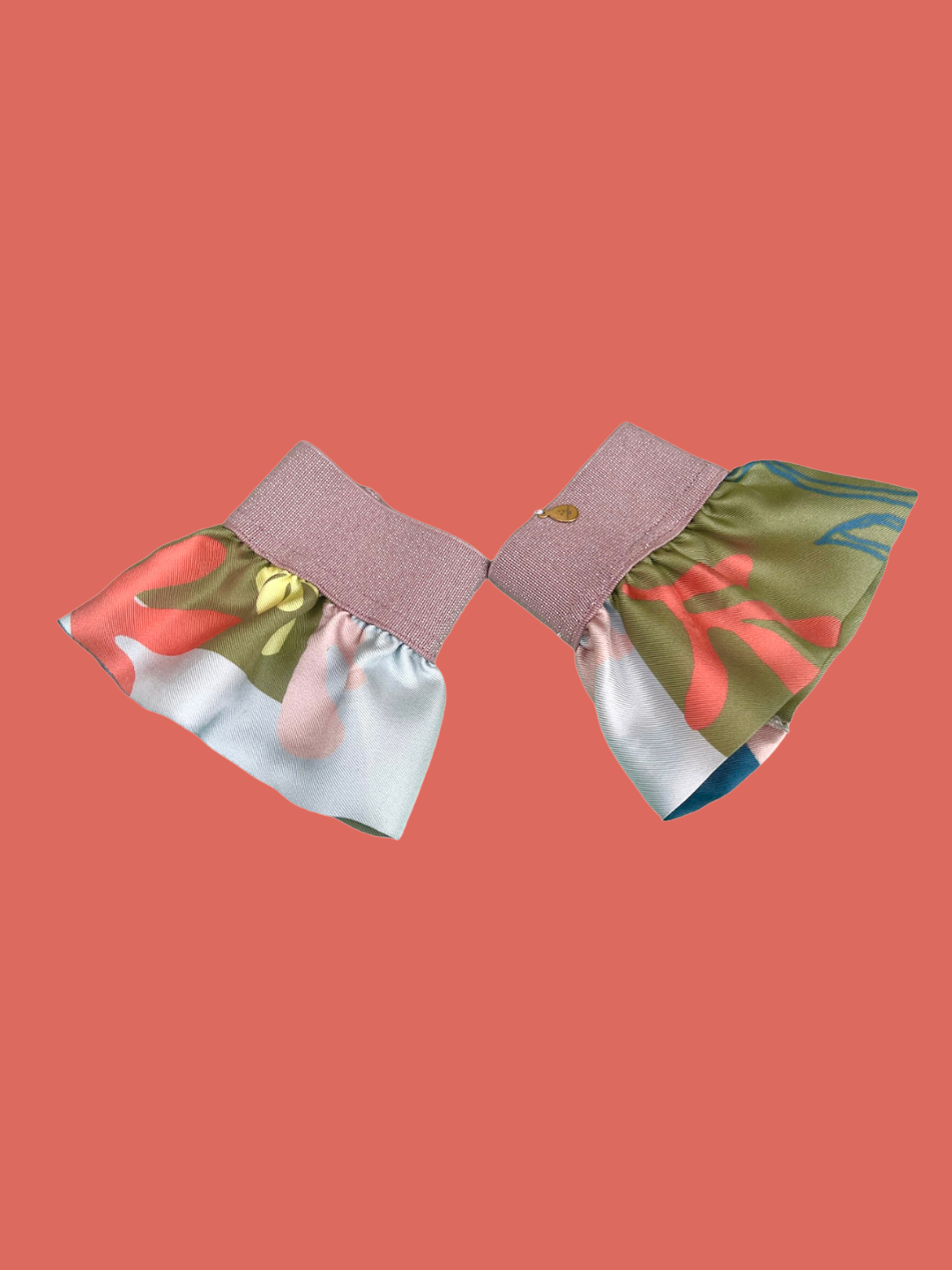 Paire de manchettes en twill de soie, confectionnée à la main à partir d'un de nos bandeaux-foulards.