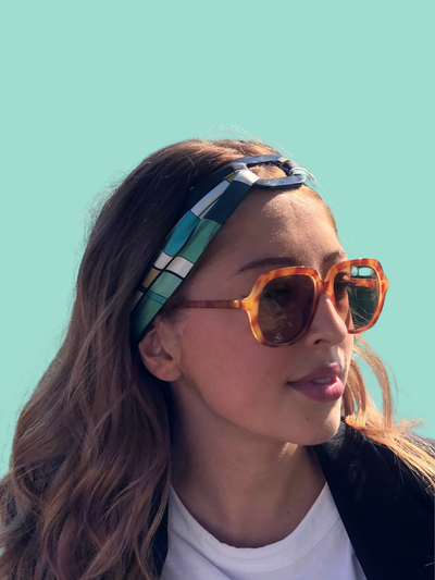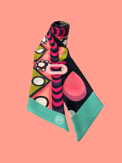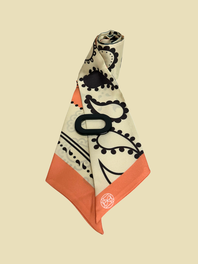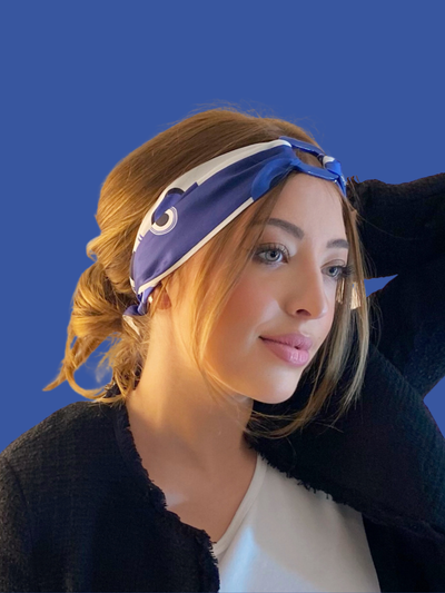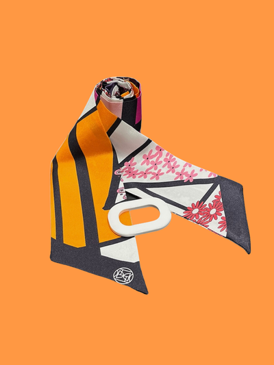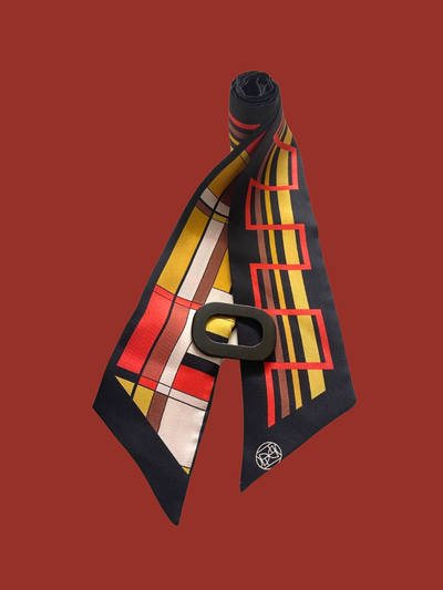 Les Duos Vintage associent un bandeau foulard en soie et un anneau en corne de buffle naturelle ou laquée, pour créer des attaches élégantes et originales dans les cheveux. Cet accessoire ingénieux permet de fixer le foulard facilement, pour un porté à la fois pratique et looké.